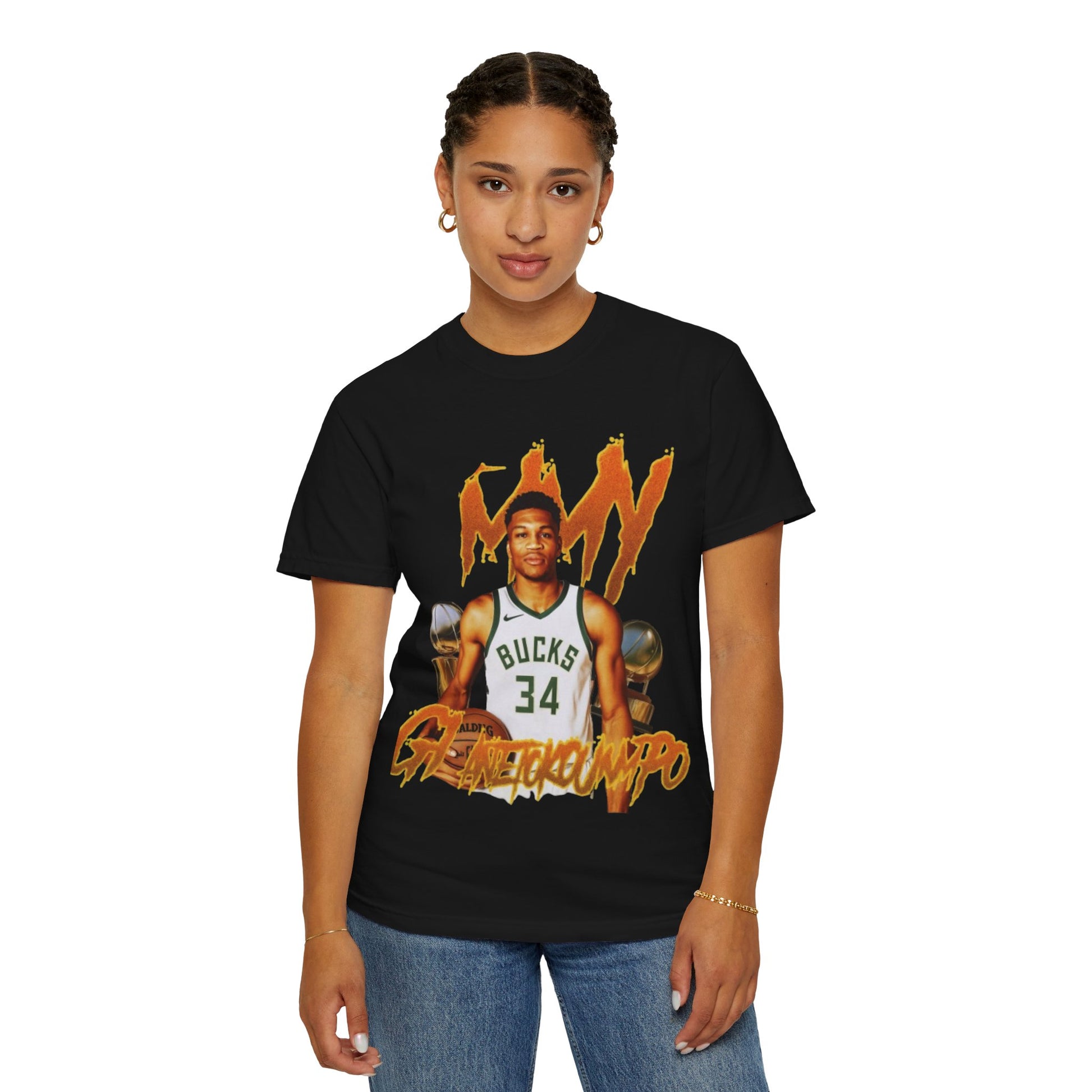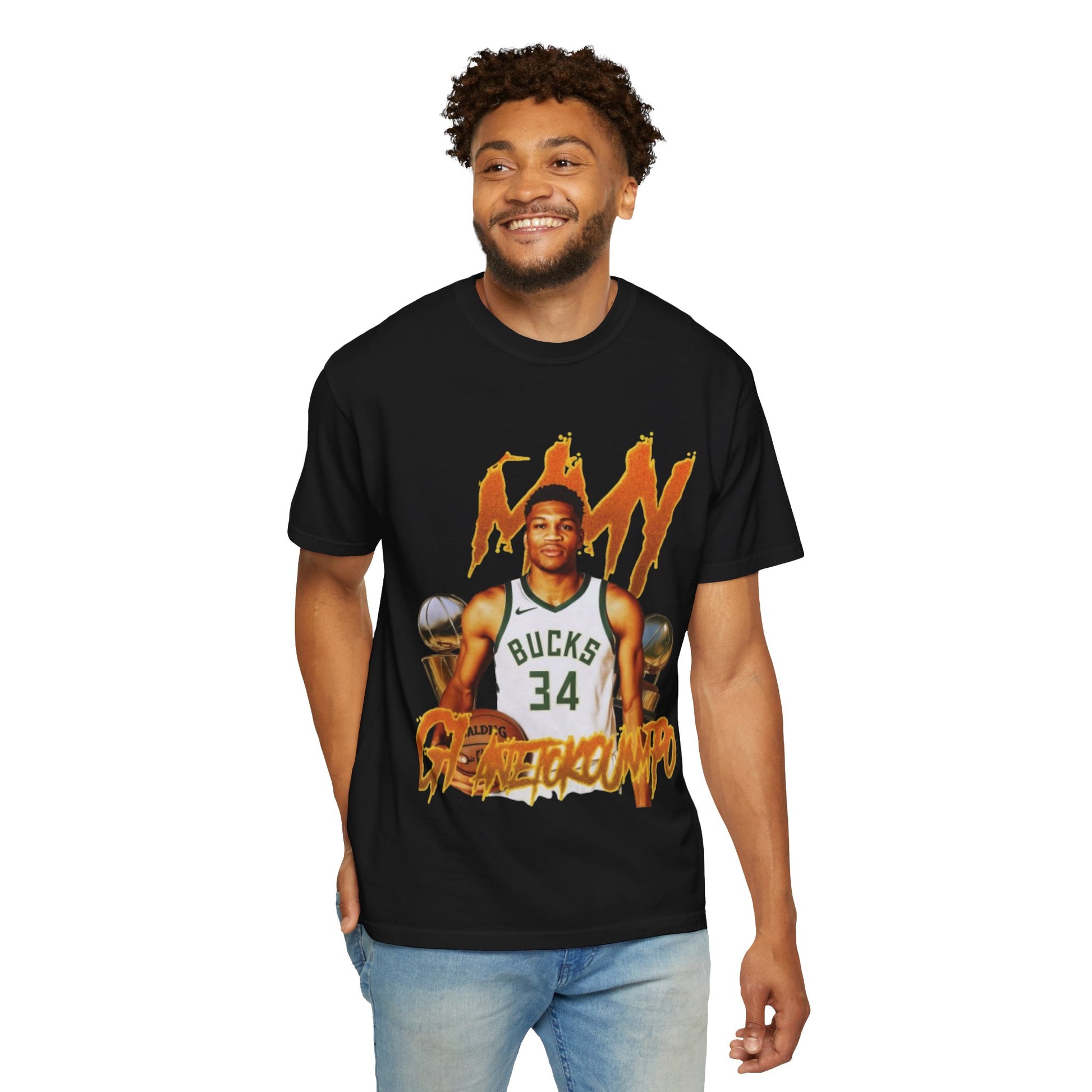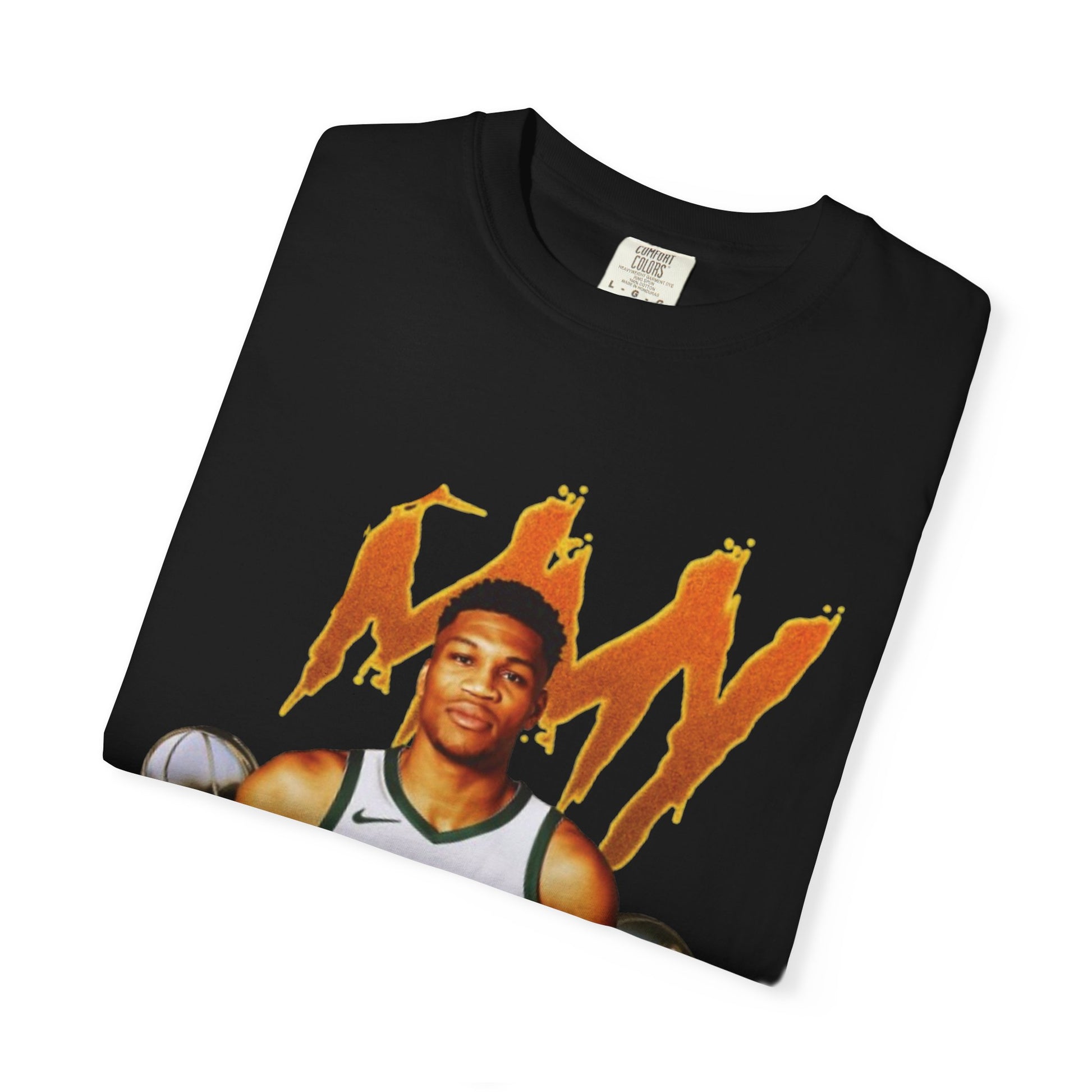 This Giannis Antetokounmpo T-shirt is a must-have for basketball fans looking to show their support for the Greek Freak. With a soft color and texture, this garment-dyed tee offers long-lasting comfort and style. Perfect for adults, it can be worn casually or semi-formally, making it a versatile addition to any wardrobe. Ideal for basketball enthusiasts and fans of Giannis Antetokounmpo, this tee is great for game days, sports events, or everyday wear.