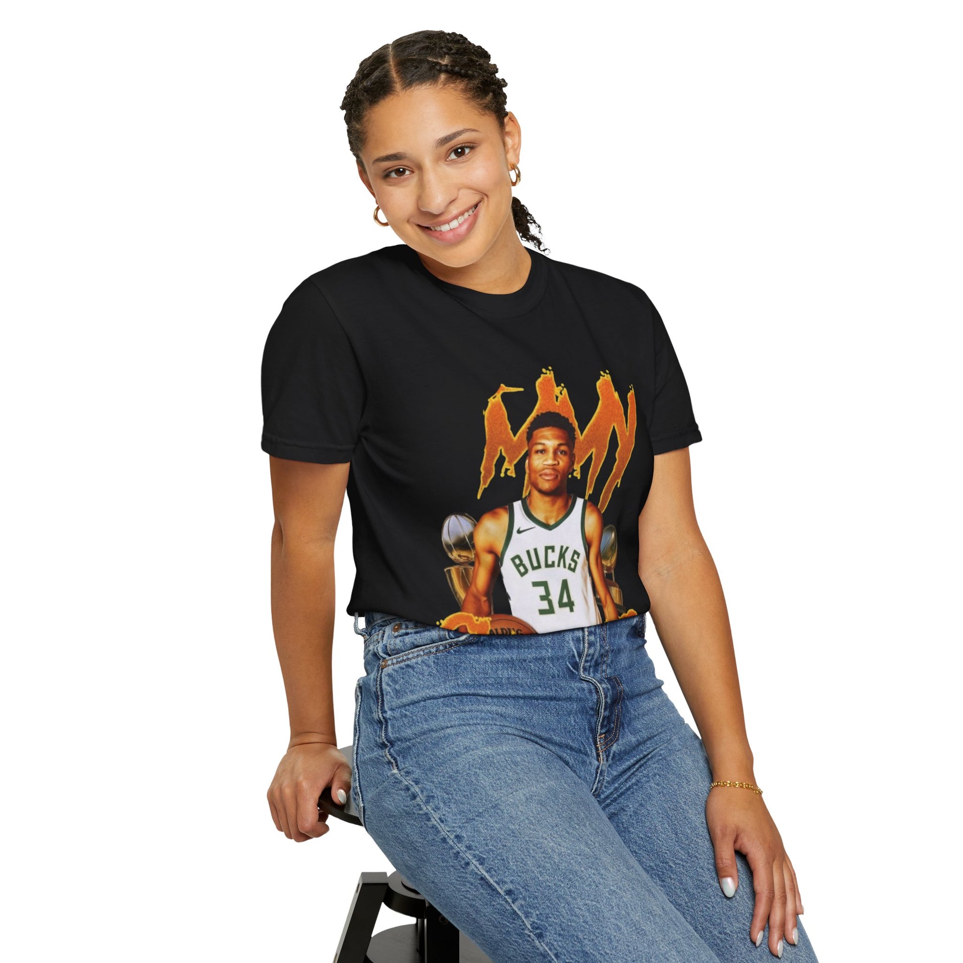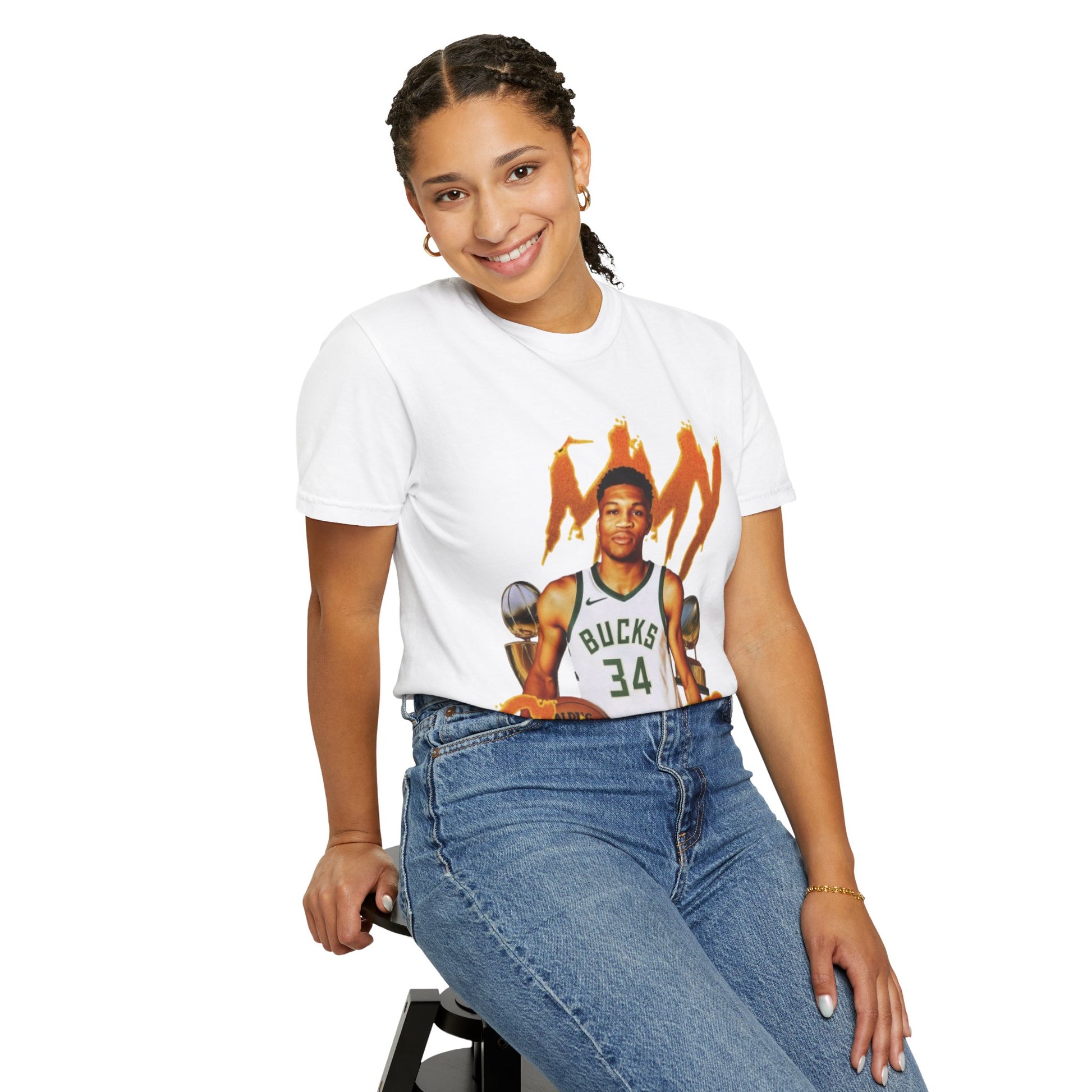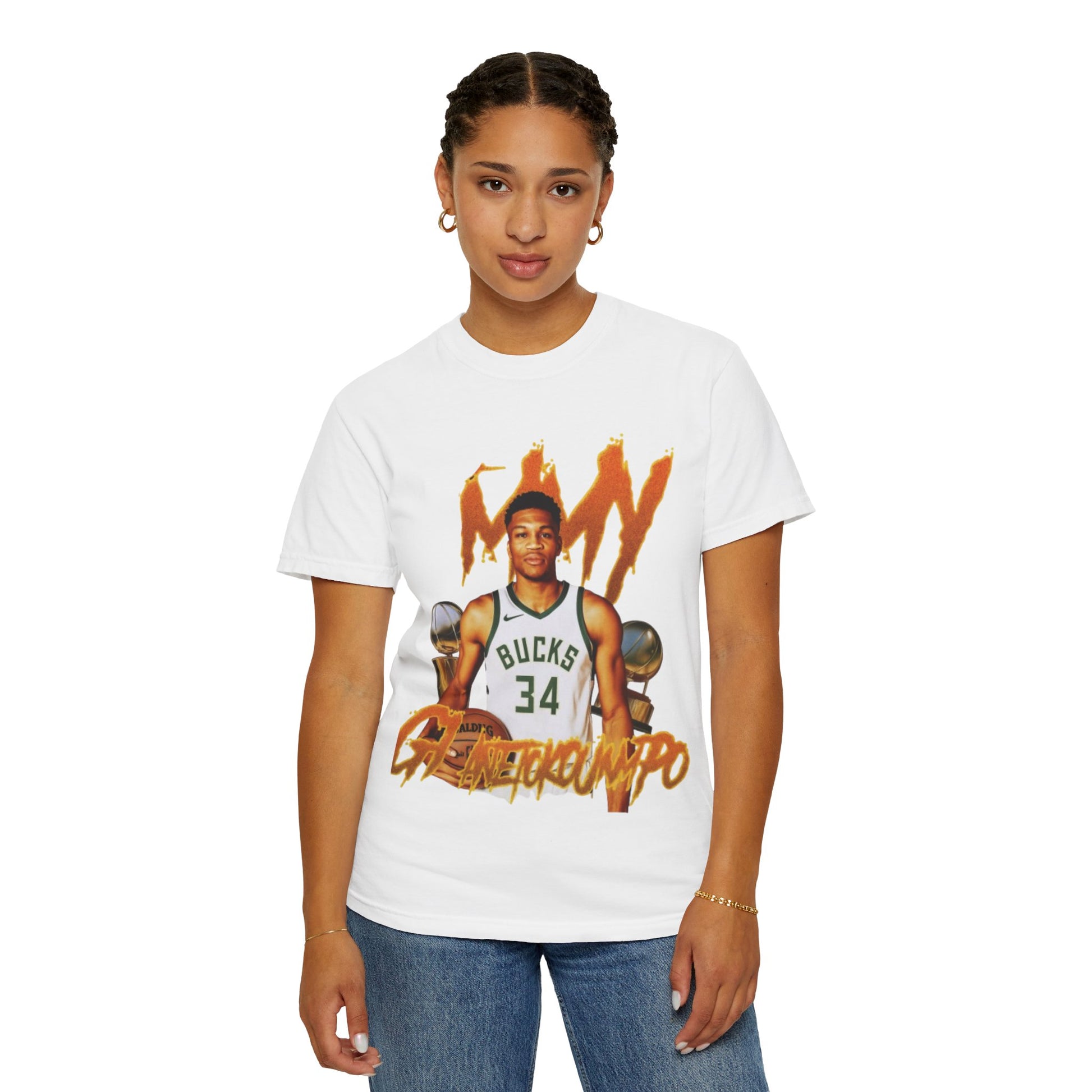 This Giannis Antetokounmpo T-shirt is a must-have for basketball fans looking to show their support for the Greek Freak. With a soft color and texture, this garment-dyed tee offers long-lasting comfort and style. Perfect for adults, it can be worn casually or semi-formally, making it a versatile addition to any wardrobe. Ideal for basketball enthusiasts and fans of Giannis Antetokounmpo, this tee is great for game days, sports events, or everyday wear.